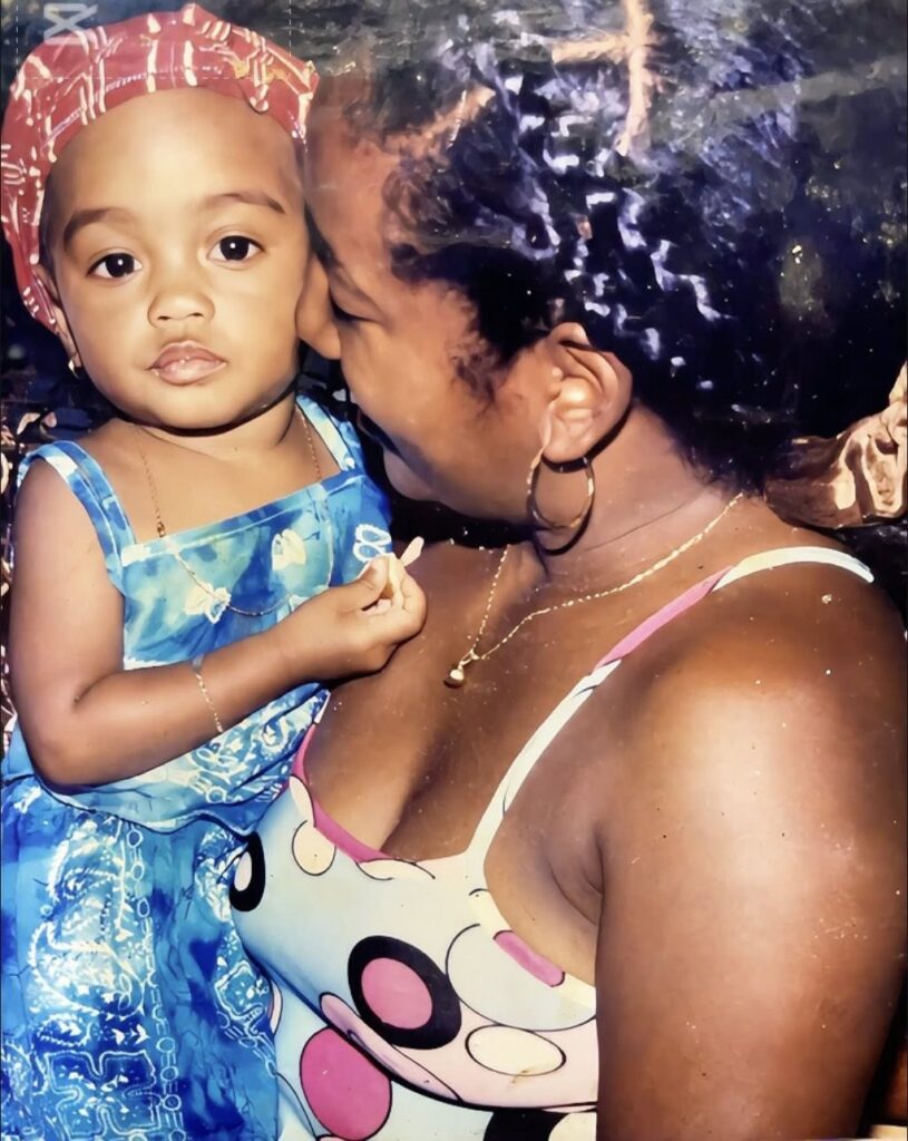Gracy, enfant, dans les bras de sa maman tant aimée. Un souvenir éternel de la femme qui lui a tout donné et qui continue de l’inspirer chaque jour.